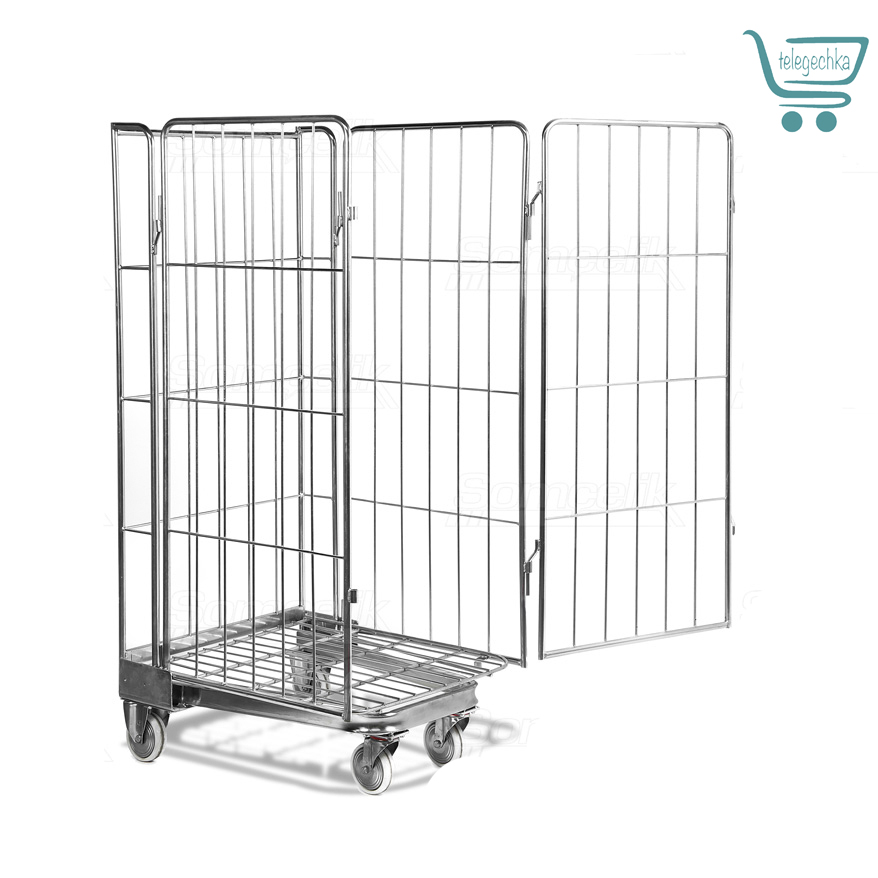 Ролл контейнер для складов, магазинов и т.д. Четыре двери, колеса из прочного полипропилена, на 150 мм.